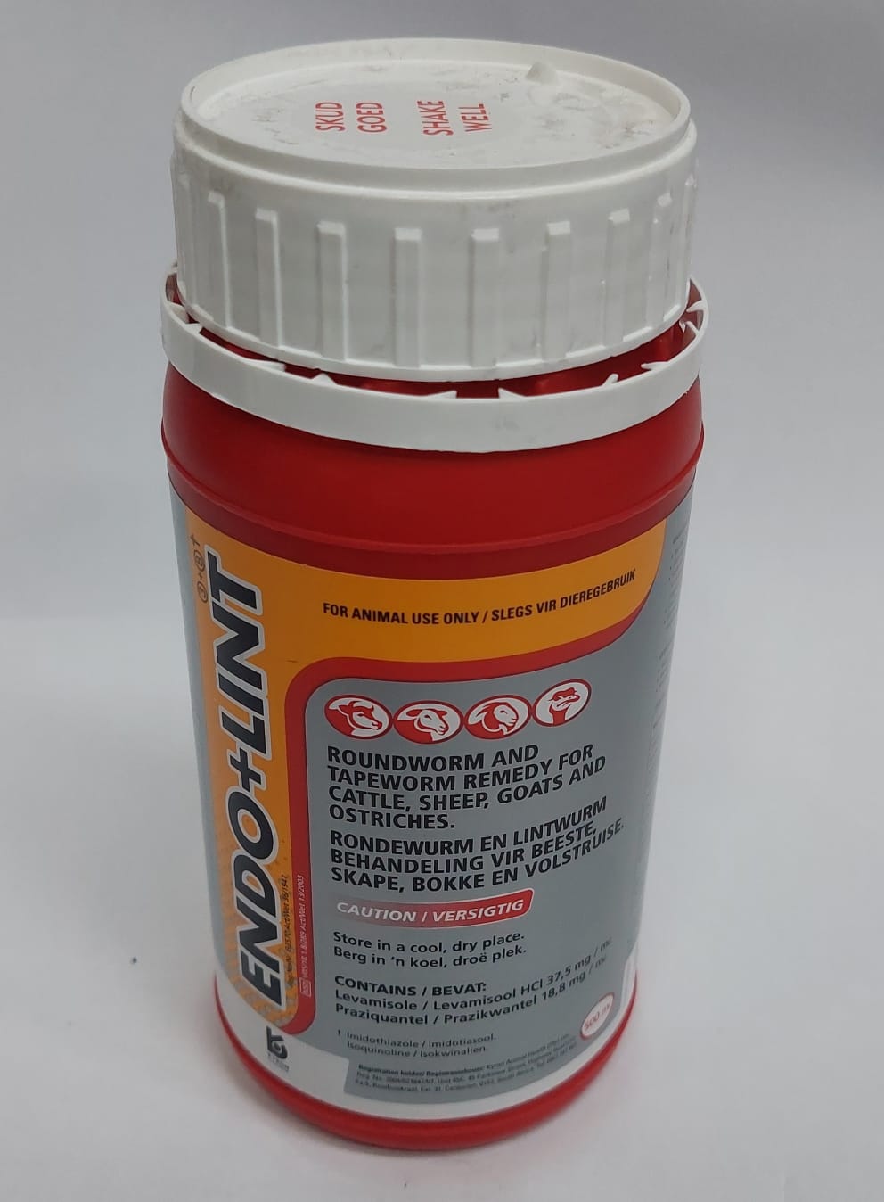 Endo+Lint 500ml is a powerful roundworm and tapeworm remedy designed for sheep, goats, cattle, and even ostriches. This specialized product is crafted with meticulous precision to ensure the health of your livestock.