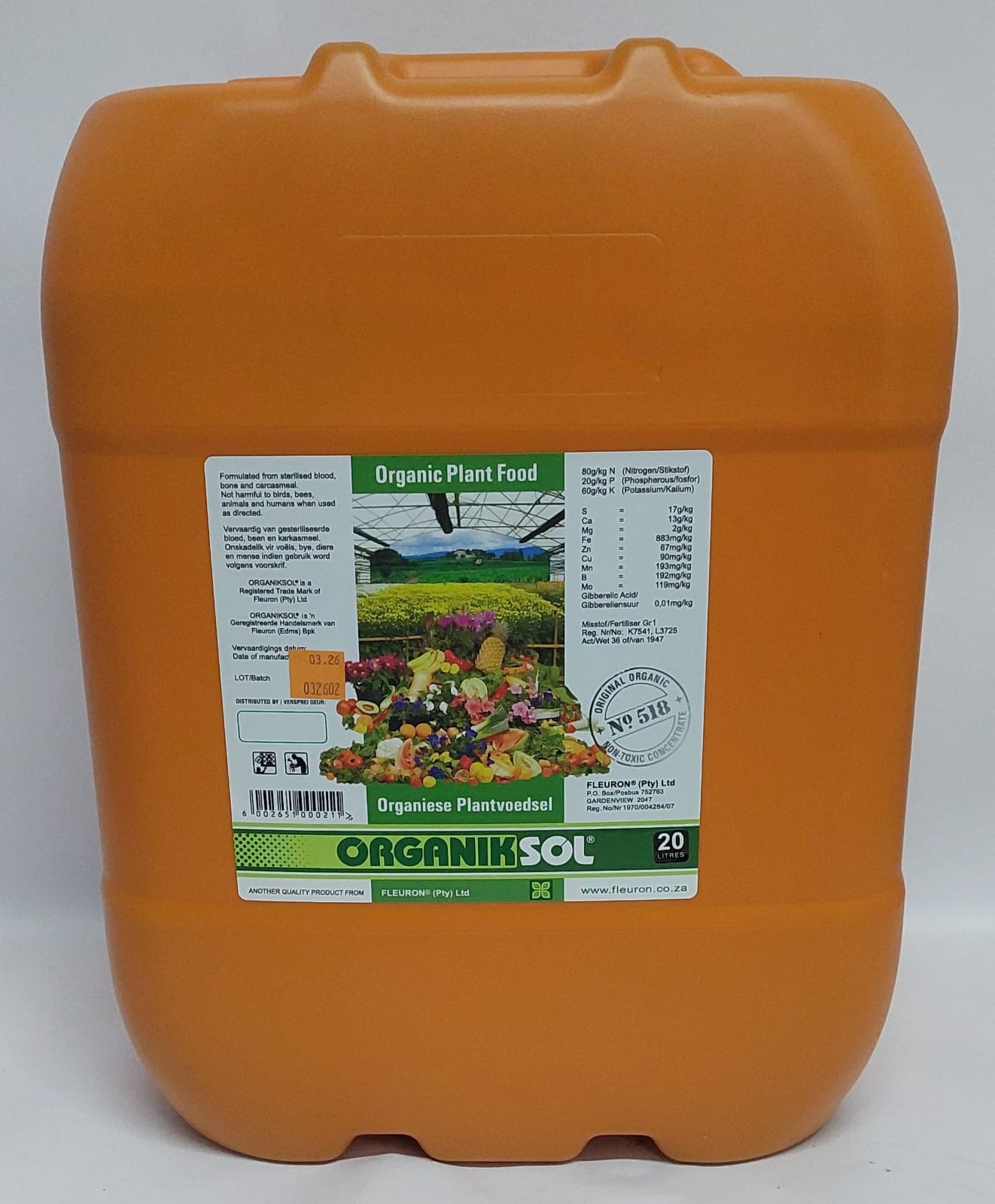 Organiksol/Nitrosol is an organically based plant food in a liquid form, uniquely designed to be readily absorbed and environmentally safe. This high-quality plant nutrient supports the cultivation of all indoor and outdoor foliage, alkaline or acid-loving plants.