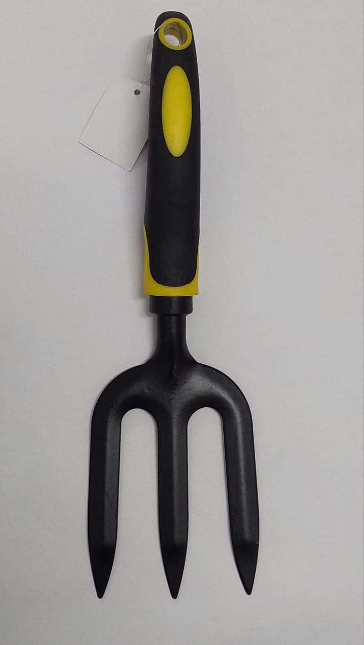 The garden fork features multiple durable tines, perfect for breaking up compacted soil, aerating beds, and mixing in soil amendments or compost